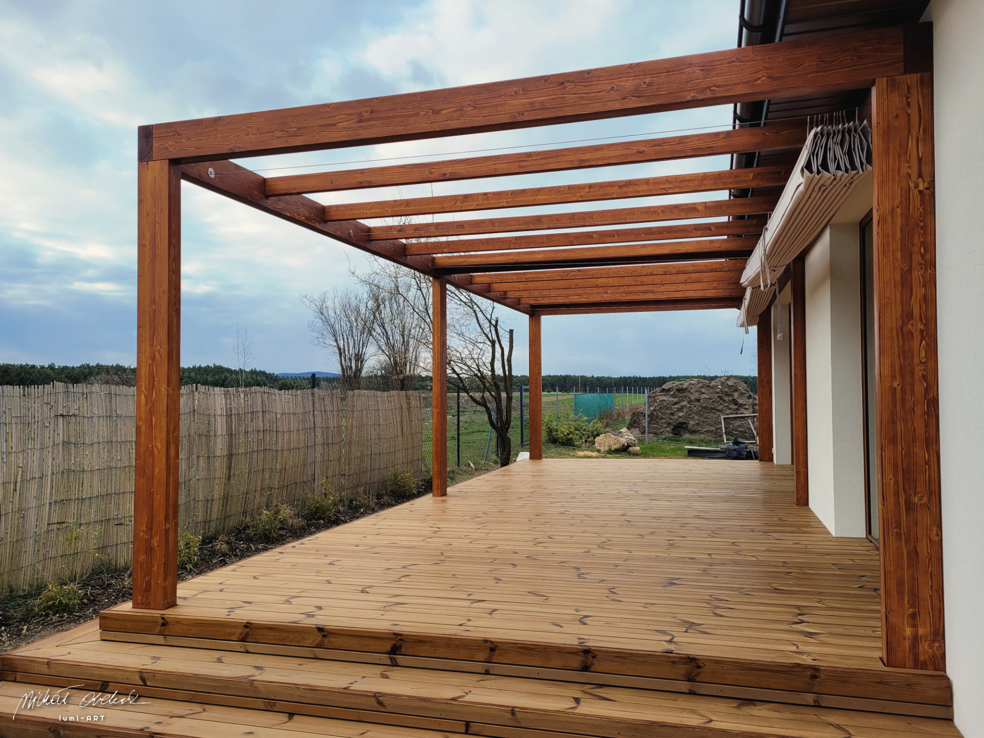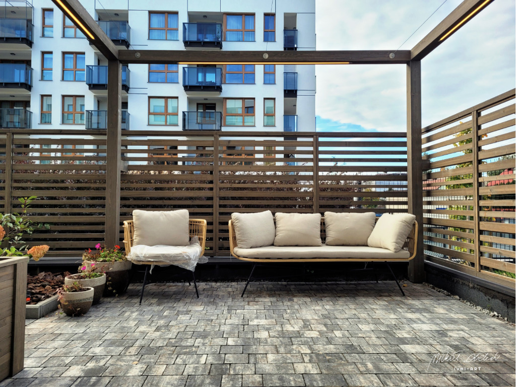 Oferuję nowoczesne pergole, trejaże pod pnącza, ozdobne ogrodzenia, tarasy z thermodrewna oraz realizację indywidualnych projektów.